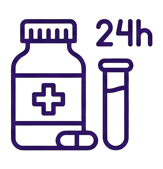 Assistência farmacêutica e laboratorial 24 horas.